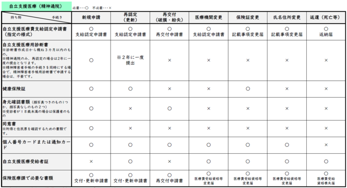- 保健医療課で必要な書類(精神障がい者(通院)医療費助成制度に係る申請書)