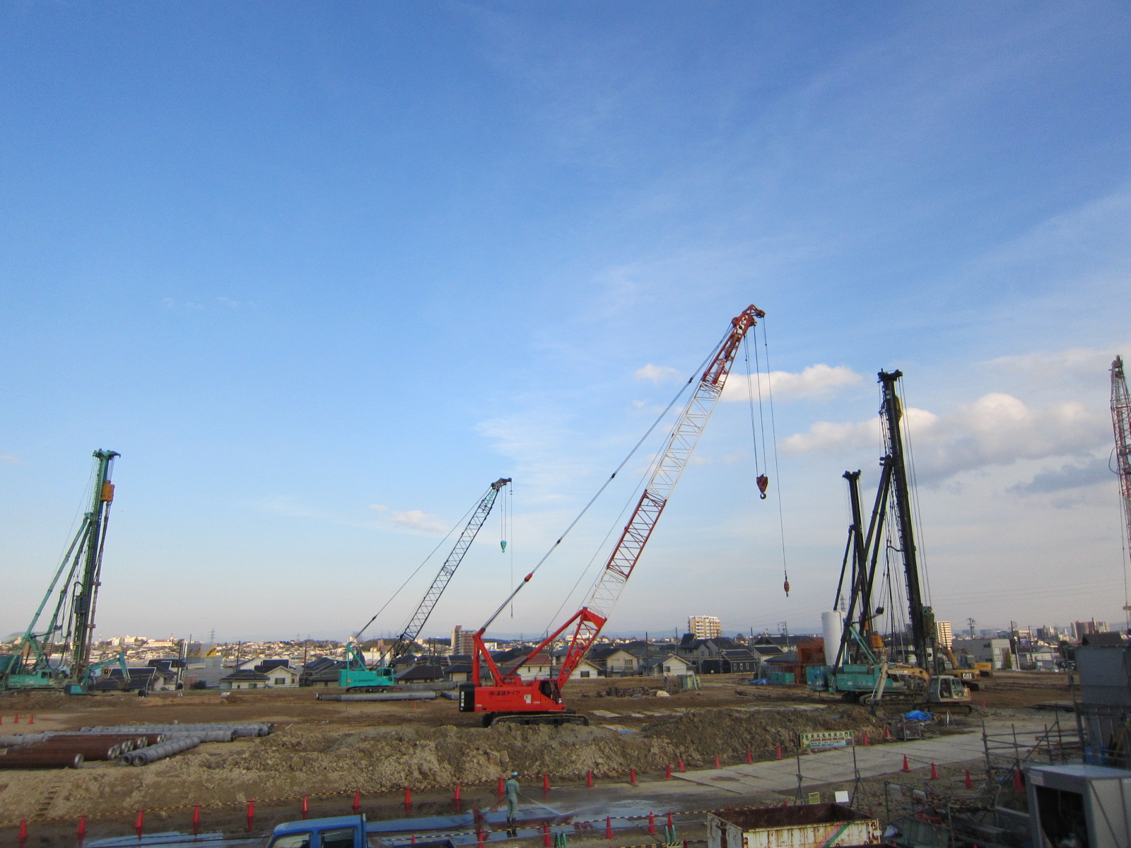 2012年11月より建物を地中深くの固い地盤で支えるための杭工事が始まりました。
