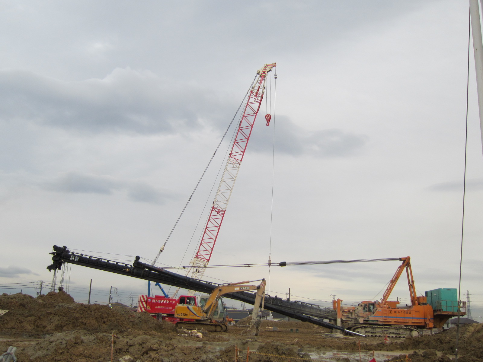 杭打機はそのままの大きさでは運搬できないため、いくつもの部品に解体し次の現場に運搬されます。